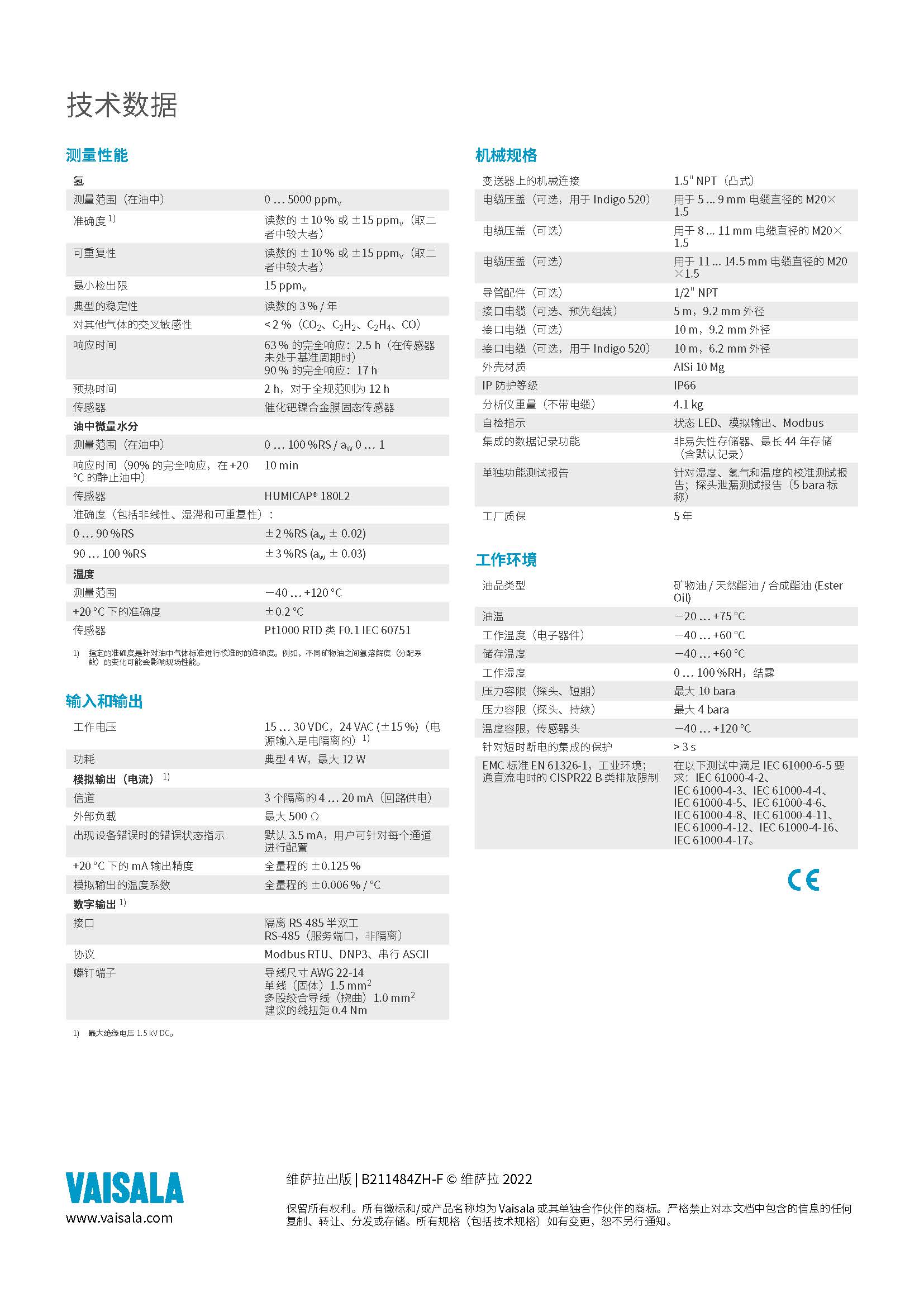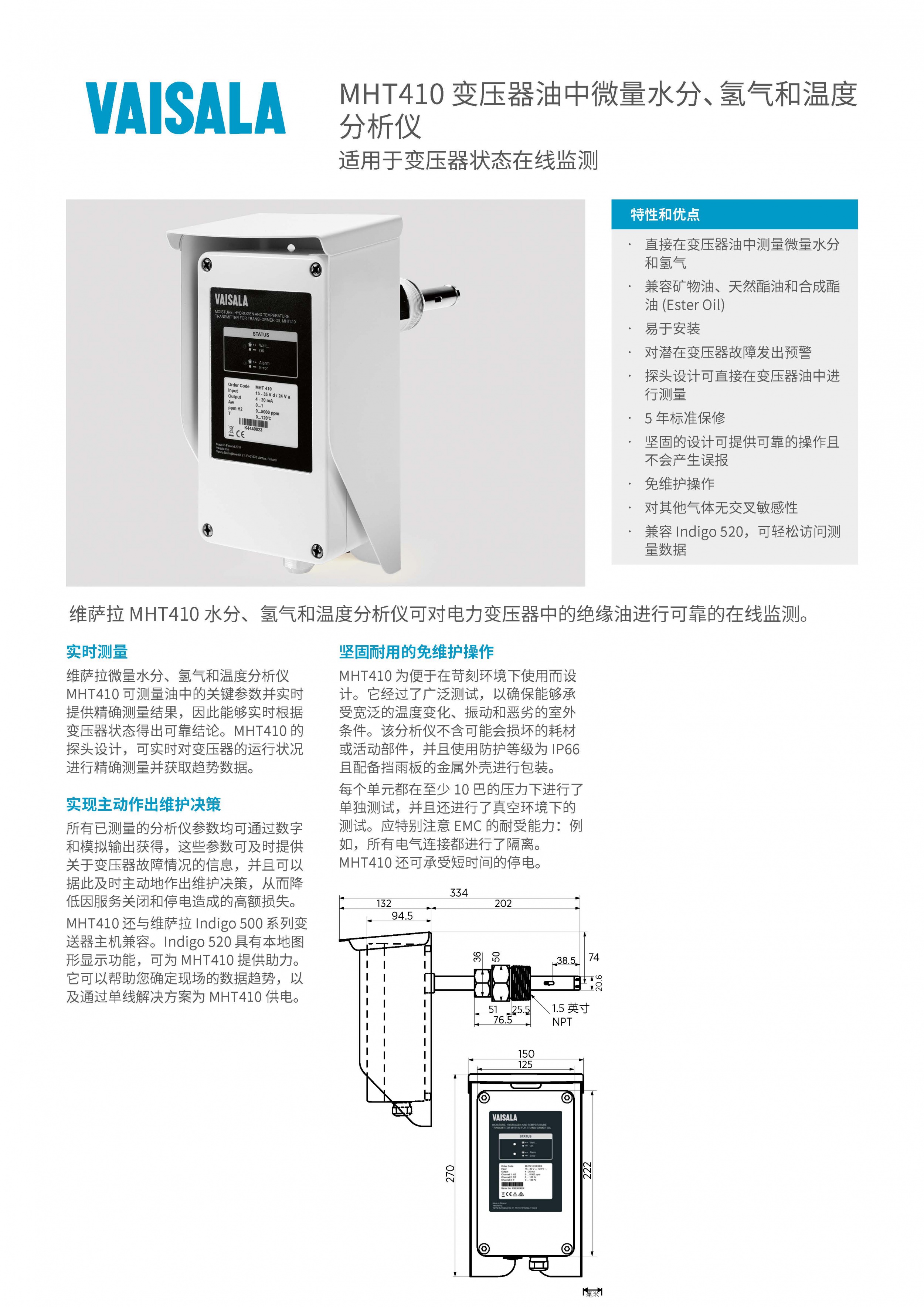 MHT410变压器状况的水分、氢气含量及温度变送器